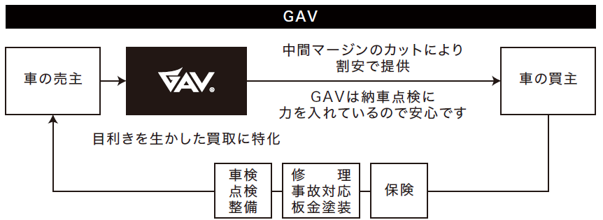 車の売主と買主間の取引を限りなくシンプルにする事で割安に提供できます。