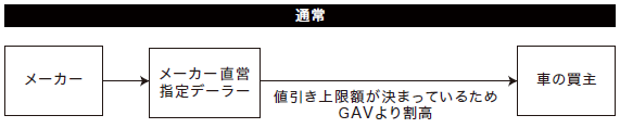 GAVは業者間取引による車の年間購入量が多いため安価に提供することができます。