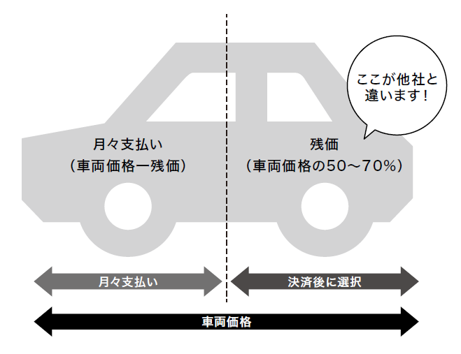 ③弊社取り扱いローン会社との信頼度・実績数により高い残価設定を実現できます。