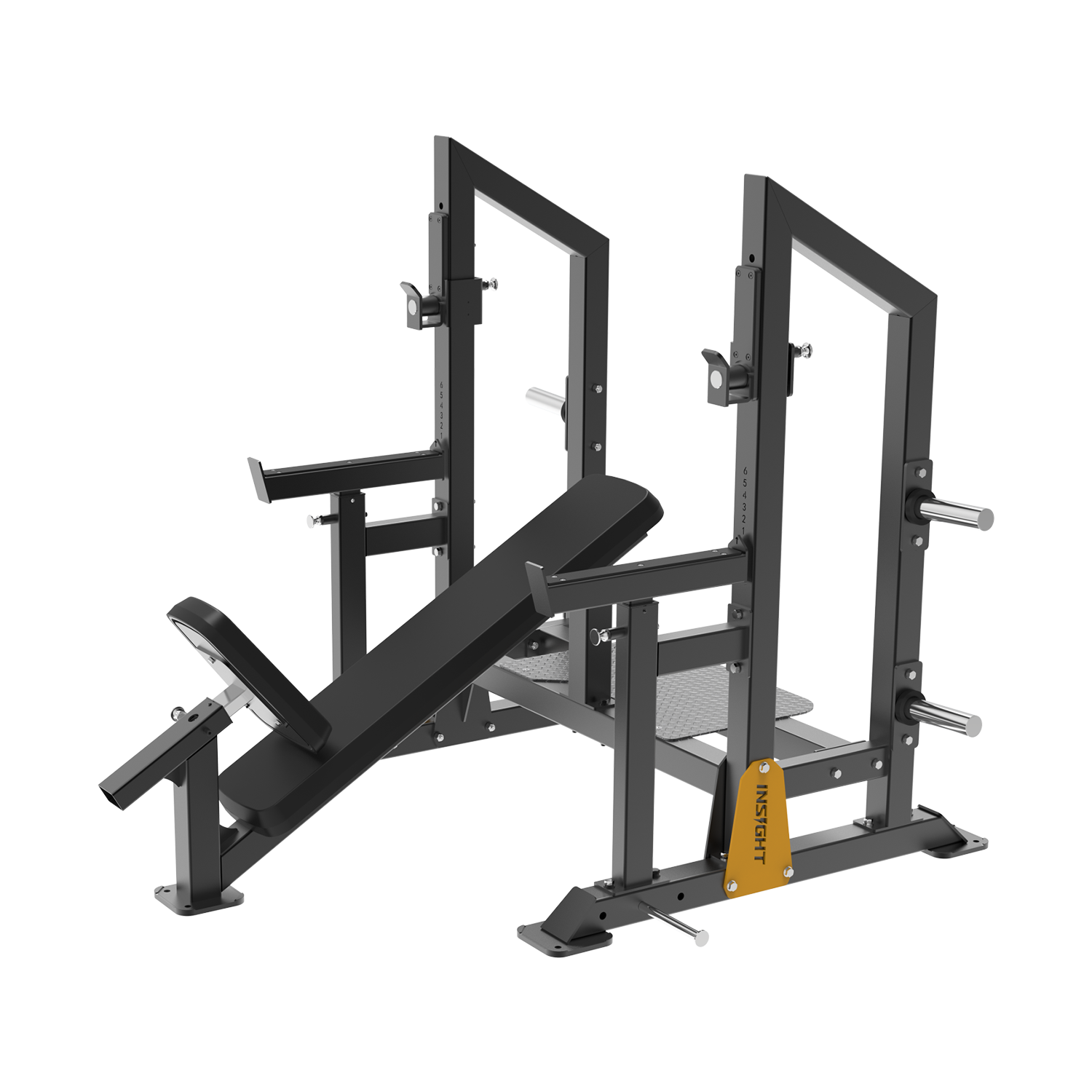 RR-FW-108は、頑丈な角パイプを使用したプロ仕様のインクラインベンチプレスラックです。ローリング式バーベル・フックを採用し、バーベルの正確な位置決めのためのスムーズな水平調整が可能です。6段階の高さ設定が可能なコンパクト・フック・デザインは、バーベルの安定性を確保すると同時に、リフトオフ距離を短縮し、より快適でコントロールしやすいスタートを提供します。